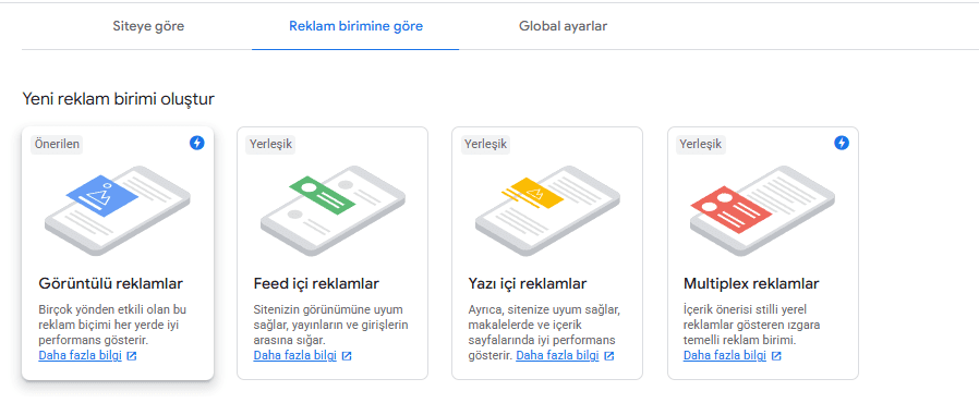 Adsense kullanmaya başladıktan sonra en önemli konu doğru reklam türünü seçmek ve gelir modelini anlamaktır. Bu bölümde Adsense reklam türleri, manuel reklamlar, otomatik reklamlar, mobil reklam türleri, gelir terimleri gibi konulardan bahsedeceğim. Eğer ilk yazımı okumadıysanız Google Adsense Nedir? yazımı okumanızı öneririm.